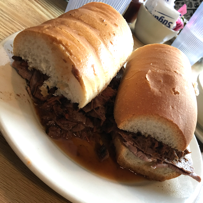 Eddie had a recommendation to go to Mother's and our uber driver from the airport agreed on that too. We stopped at Mother's for lunch. OMG, what deliciousness. Our uber driver recommended the roast beef po' boy. And that's what Kris and I got. Amazing, seriously it's all about the debris. So freaking good.
